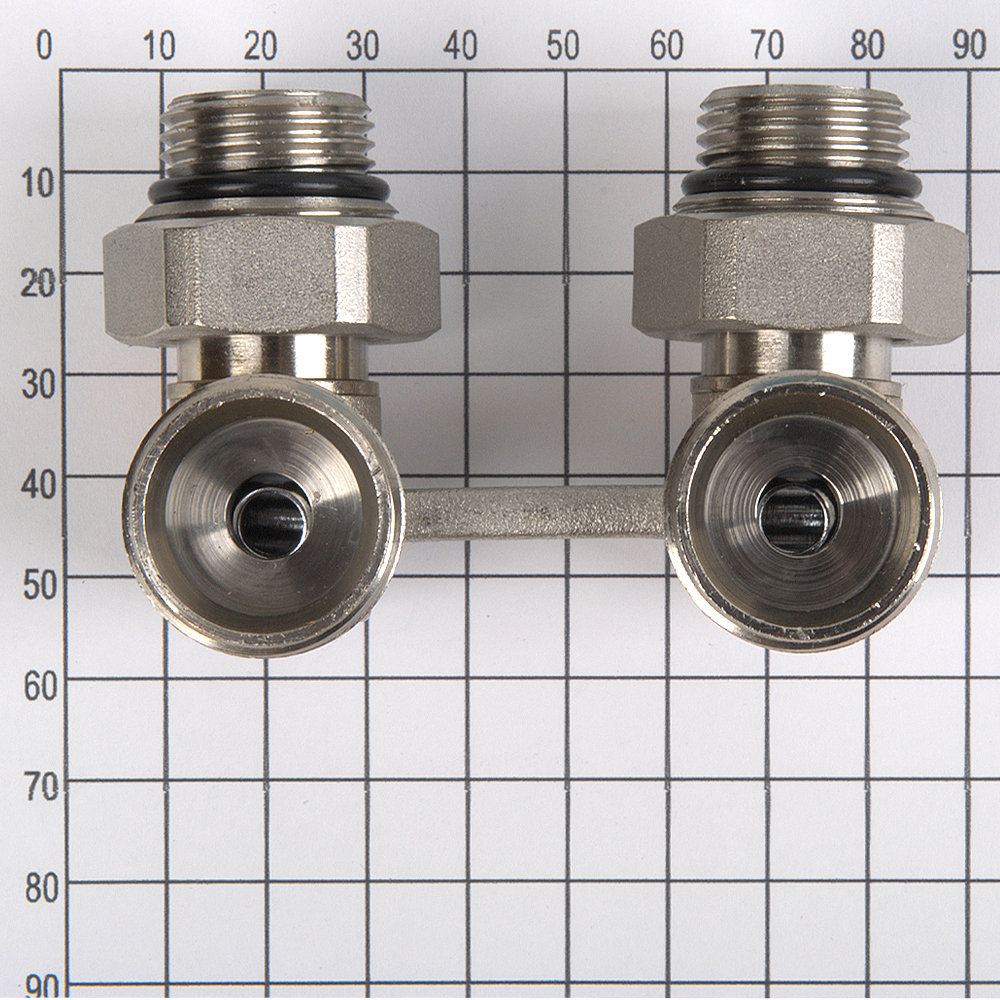 Сдвоенный узел используется при фиксированном межцентровом расстоянии между присоединительными патрубками 50 мм.