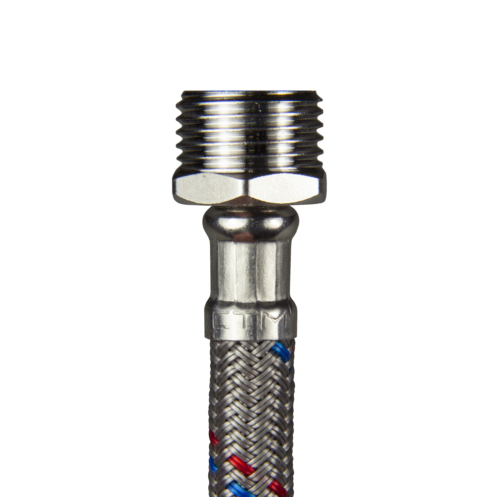 Подводка для воды в полиамидной (нейлоновой) оплётке 1/2" г/ш 40 cм CTM с с внутренней/наружной резьбой предназначена для присоединения к трубопроводам сантехнической арматуры и приборов сантехнического назначения (смесителей, душевых кабин, биде, умывальников, унитазов) и подводки воды к агрегатам бытового назначения (водонагревательным приборам, стиральным и посудомоечным машинам, насосам и тд).
