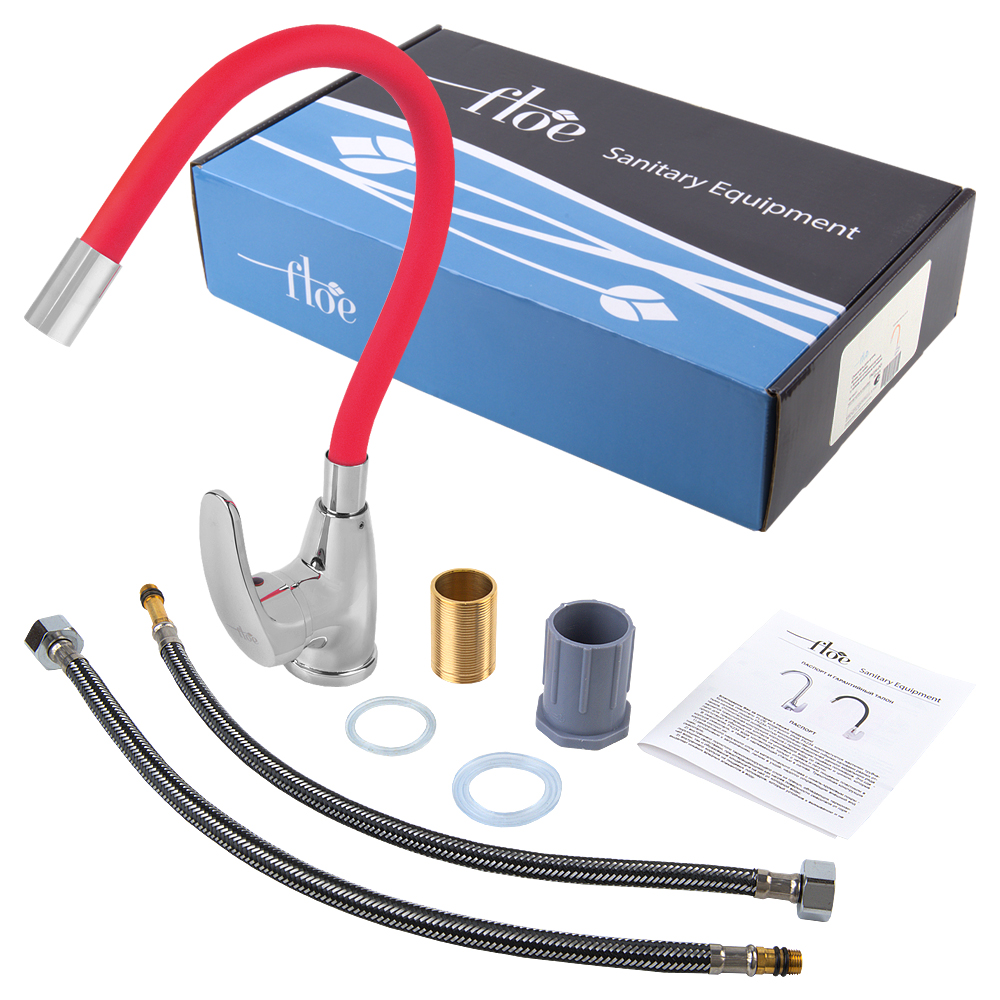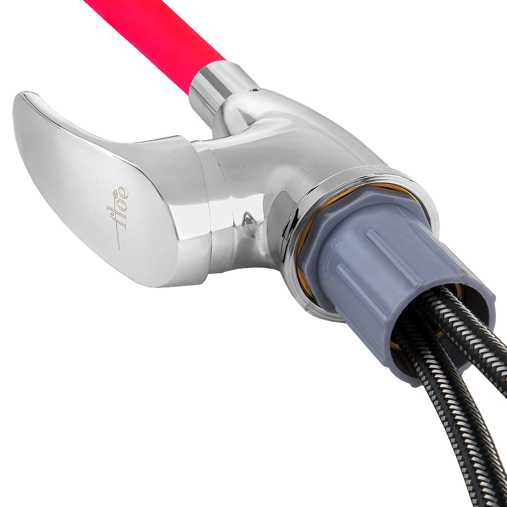 Смеситель FLOE FK234-GR для кухни, 40 мм, на гайке, с боковой ручкой, с гибким красным изливом, отзывы (0 )